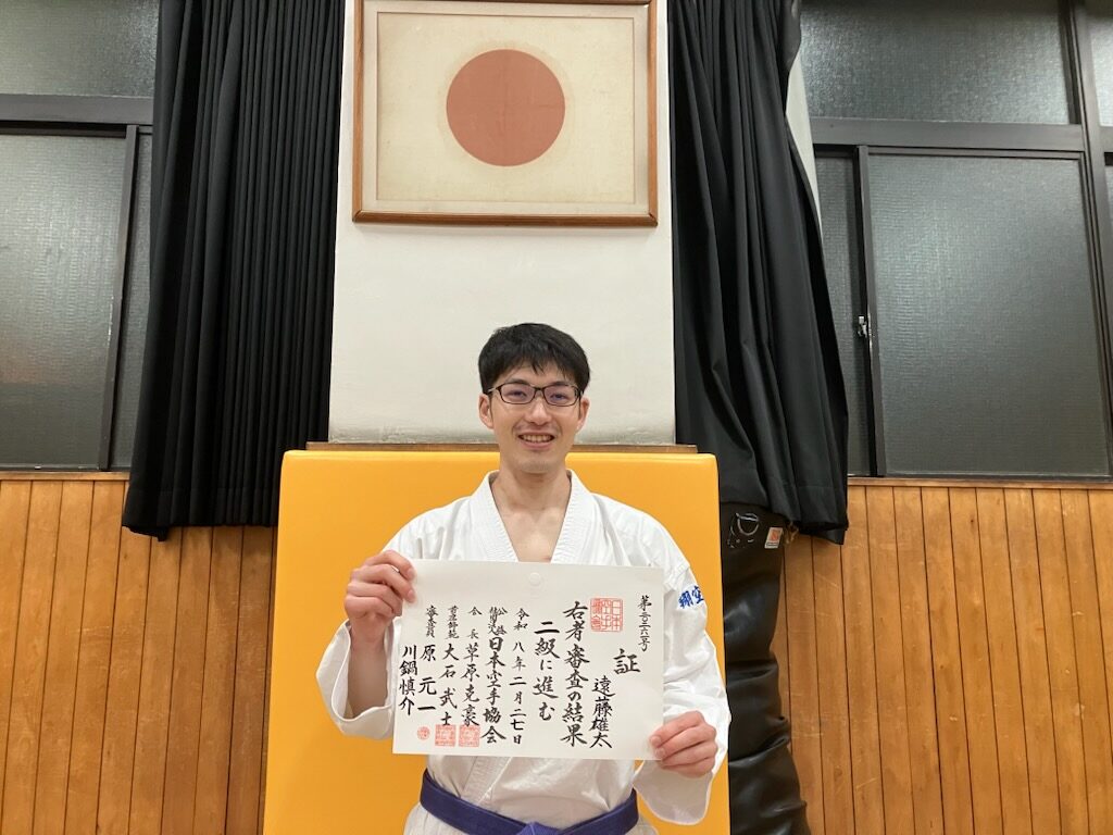 昇級おめでとうございます! 2026年3月10日 に chiyoda が投稿 — コメントを残す 2月に行われた昇級審査にて遠藤さんが二級に合格!おめでとうございます。日頃の熱心な稽古の結果ですね。次は一級を目指して更に励みましょう。
